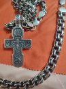 Представляем комплект из двух выразительных ювелирных украшений, выполненных из серебра 925 пробы: массивная мужская цепь плетения Бисмарк весом 120 грамм и нательная иконка с образом Владимирской Божьей Матери весом 33 грамма. Оба изделия выполнены с применением чернения, которая подчёркивает рельеф и добавляет глубину деталям.