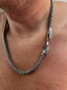 Цепь выполнена в классическом плетении Бисмарк, известном своей прочностью, надёжностью и статусным внешним видом. Плетение Бисмарк подходит для мужчин, ценящих уверенность, выразительность и брутальность в украшениях. Цепь весом 120 г подчёркивает силу и харизму своего владельца, а её фактура делает её удобной для повседневного ношения.