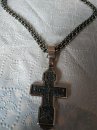 Изображено на кресте: Распятие Христово с предстоящими. Святая Троица. Архангел Михаил. Святые Воины. Тихвинская икона Божией Матери. Православный крест.Высота: 8 мм